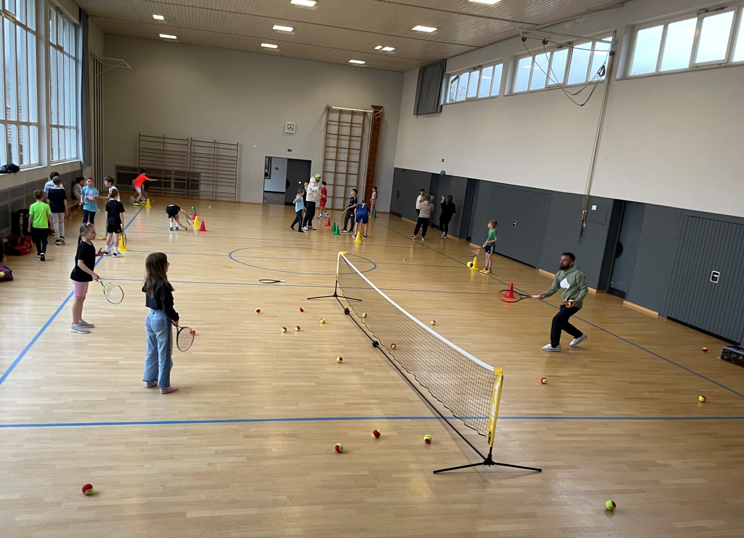Letzte Woche waren die Tennistrainer des Tennis-Club Beuren e.V. aus der Miguels Players Academy bei uns im Sportunterricht. Wir konnten unter professioneller Anleitung den Tennissport kennenlernen und ausprobieren. Ab dem 4. Mai findet an unserer Schule montags um 16.00 Uhr eine Tennis Schul AG statt. Wir freuen uns sehr über diese Kooperation.